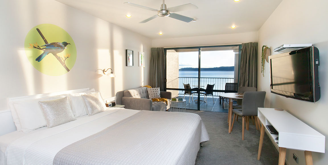 Experience the best Lake Taupo accommodation in one of our boutique motel rooms - we are as close to the lake as you can get! Yes, every room at Boulevard Waters is right on the lake front, no busy roads to cross, and no interruptions to your view no matter which room you are in, we promise. This is the perfect time to enjoy your own back yard with our quiet accommodation and beautiful views encompassing stunning Lake Taupo, snow capped mountains and the town centre lights. Call us today or click here to check availability and guaranteed best prices with FREE CANCELLATION with 48 hours notice...