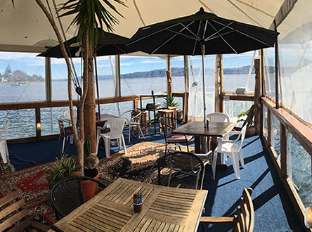 This licensed cafe and bar sits right over the water itself with panoramic views across the lake. It's a stunning place to relax with a coffee, beer or wine and wood fired pizzas are available.